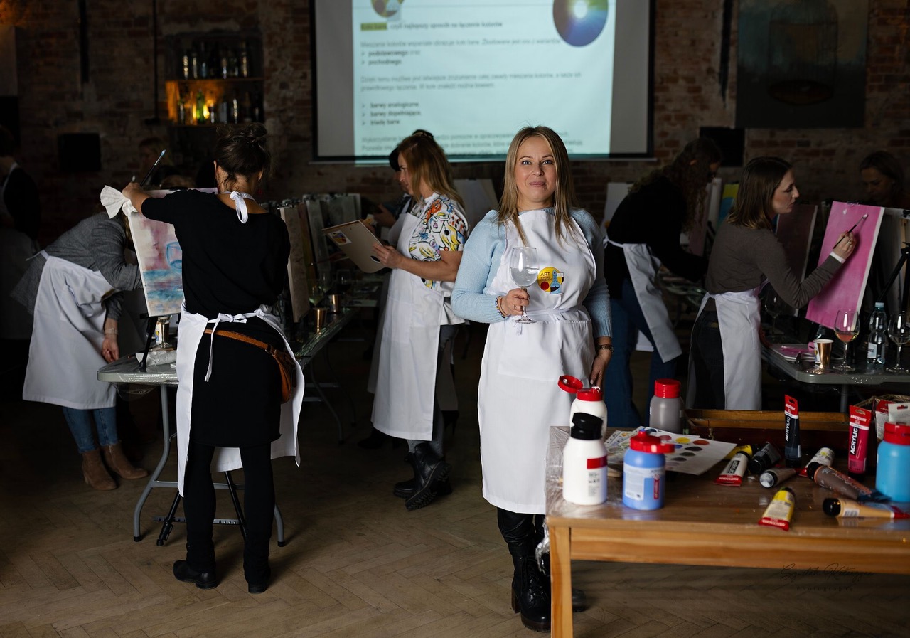 Dlatego podczas moich warsztatów malowania intuicyjnego dla kobiet, kreatywnych warsztatów malarskich typu „malowanie przy winie” – gdzie liczy się proces twórczy, a wino jest jedynie subtelnym akcentem kulturowym – oraz kreatywnych sesji dla zespołów i liderów, tworzymy przestrzeń, w której można bezpiecznie eksperymentować, wyrażać siebie i odkrywać nowe sposoby myślenia.